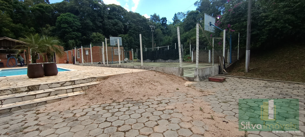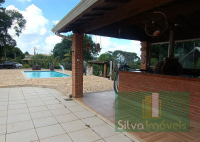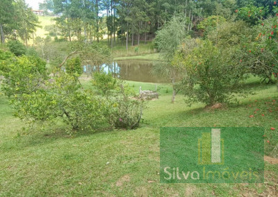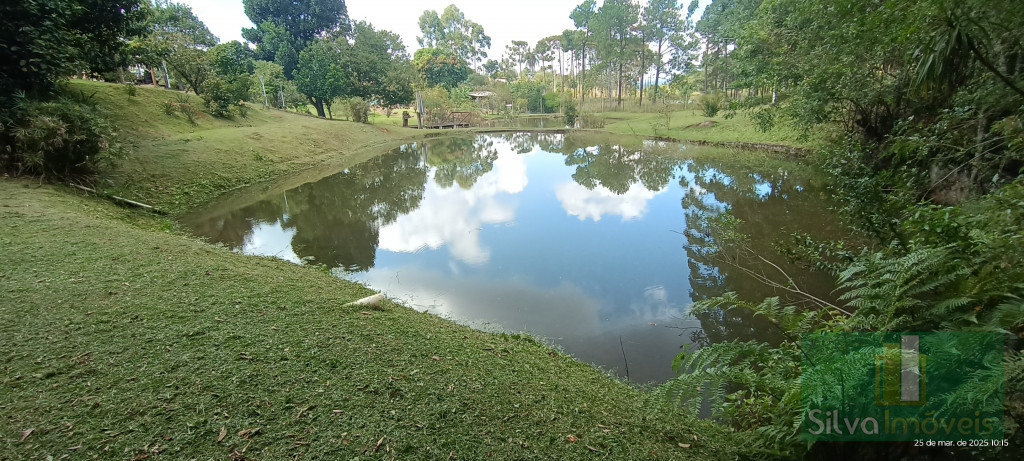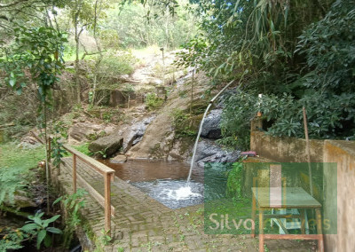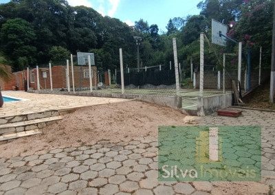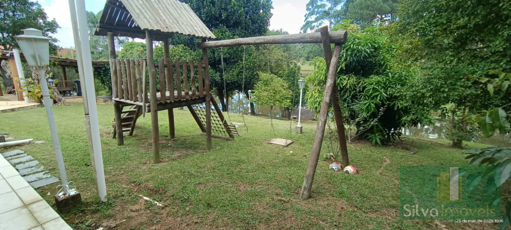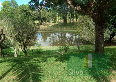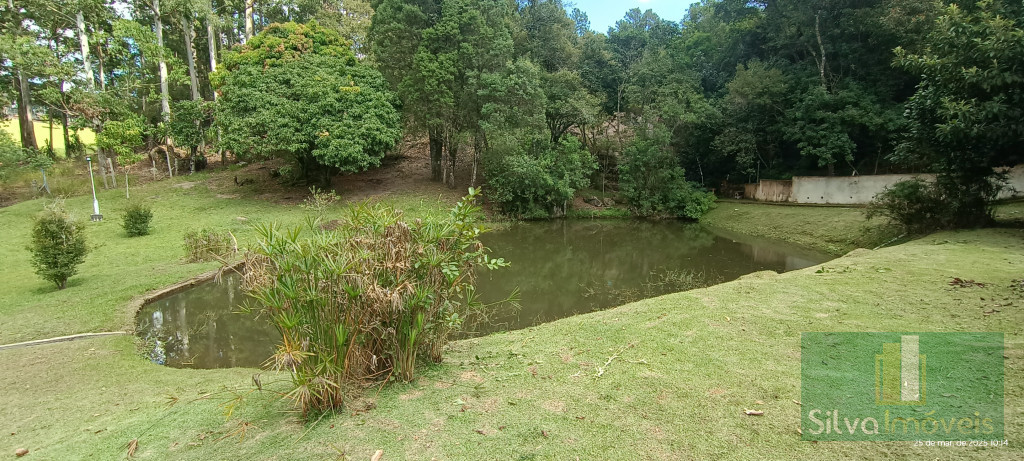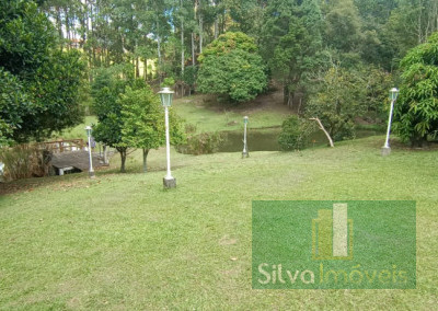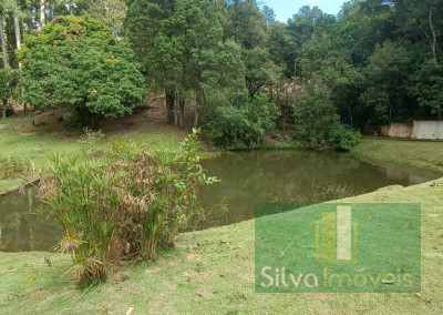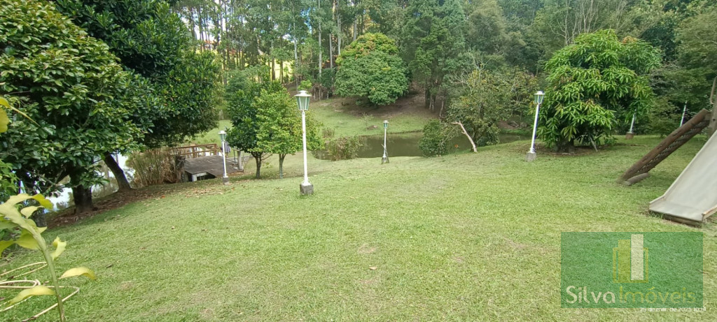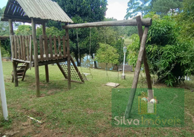 Chácara dispõe de 2 lagos , cachoeira, quadra de esporte, campo gramado, piscina, churrasqueira, forno a lenha, plauground, viveiro para pássaros