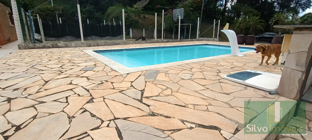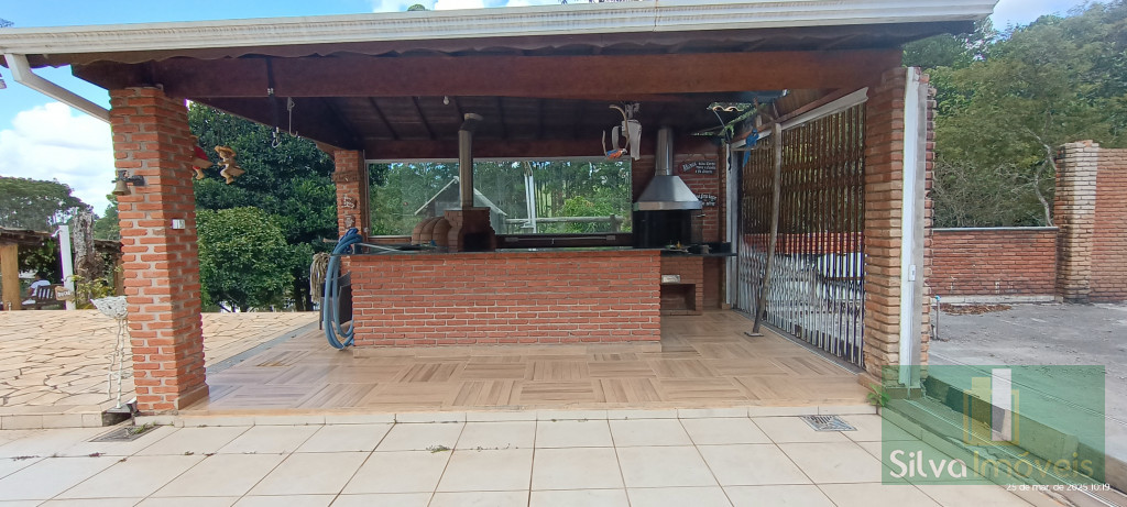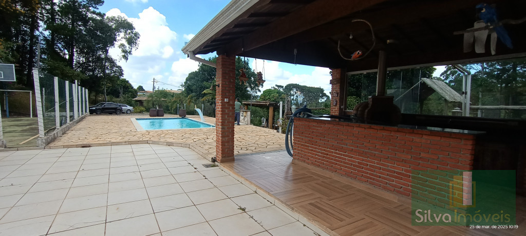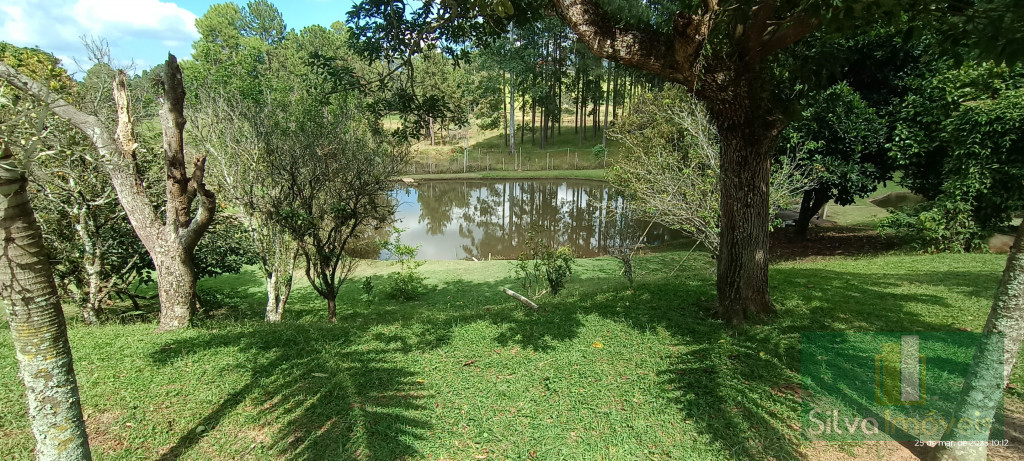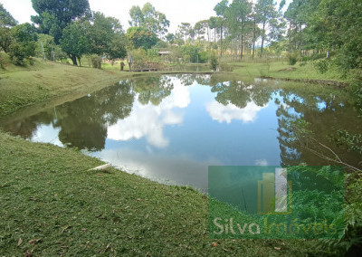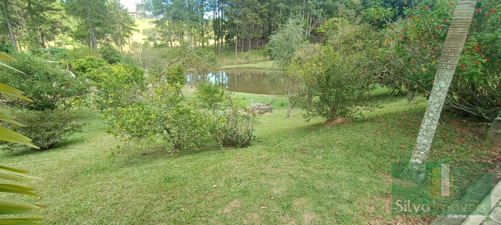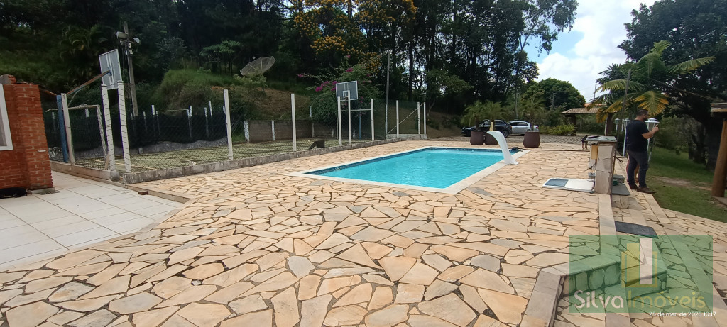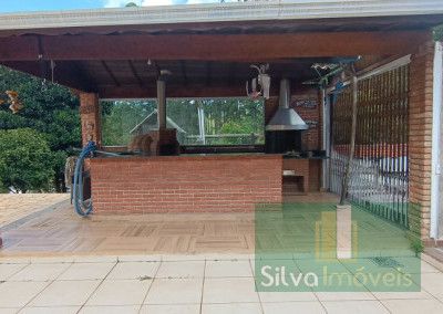 Chácara dispõe de 2 lagos , cachoeira, quadra de esporte, campo gramado, piscina, churrasqueira, forno a lenha, plauground, viveiro para pássaros