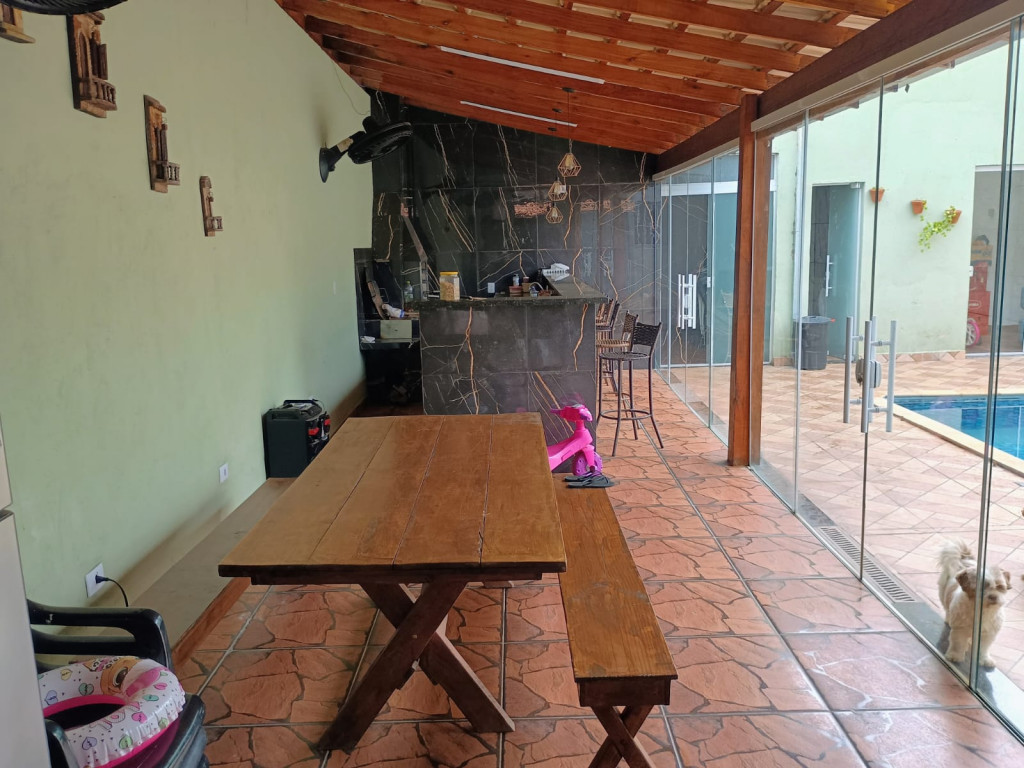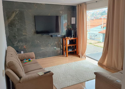 Sobrado com 3 dormitórios sendo 1 suite, 2 banheiros 1 lavabo, ampla cozinha com acabamento fino, sala de star, uma segunda sala de TV no piso superior, piscina e vaga de garagem para 3 carros.