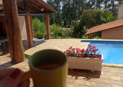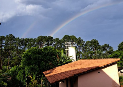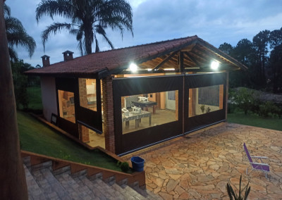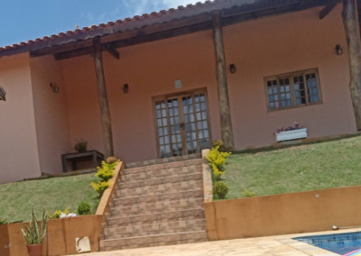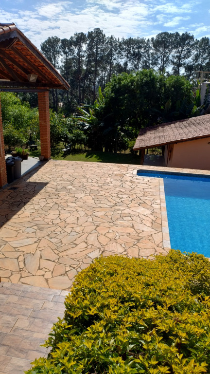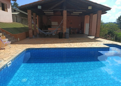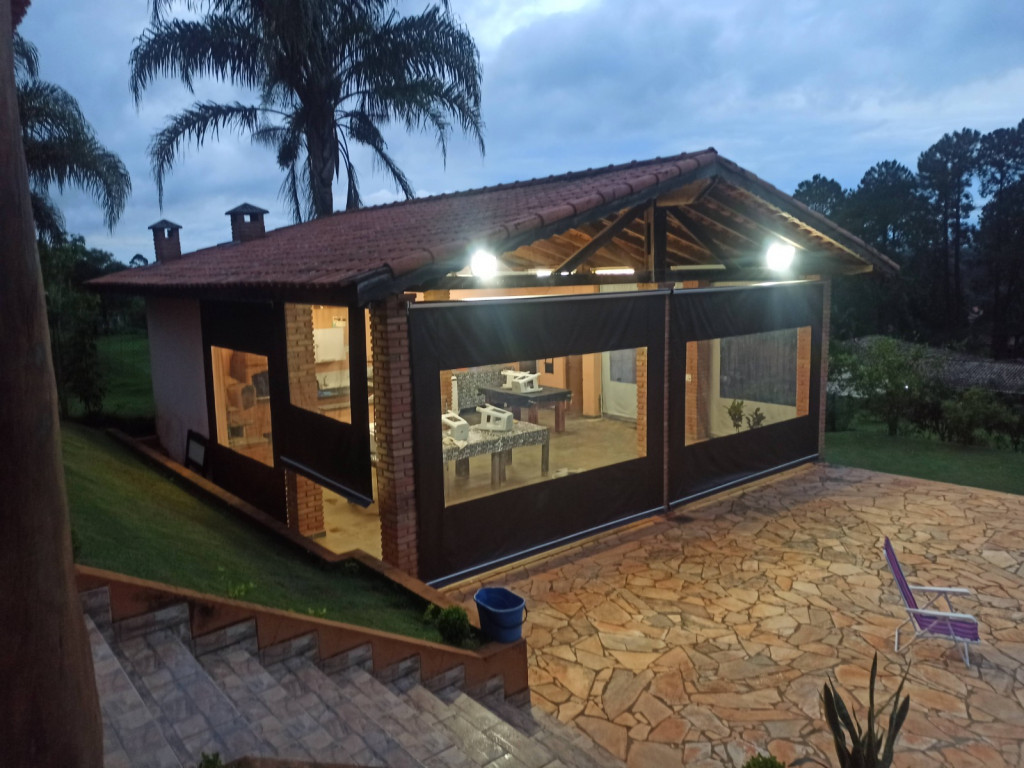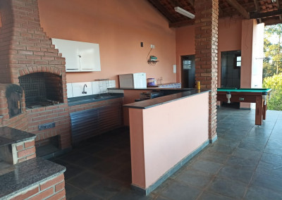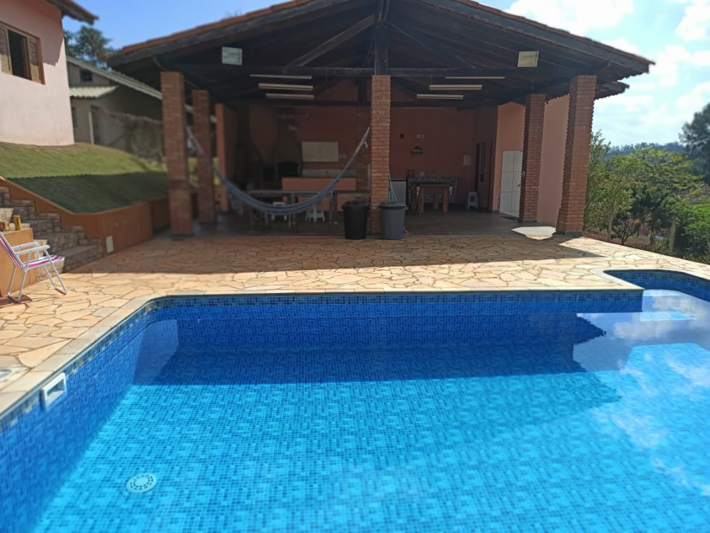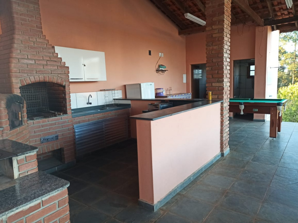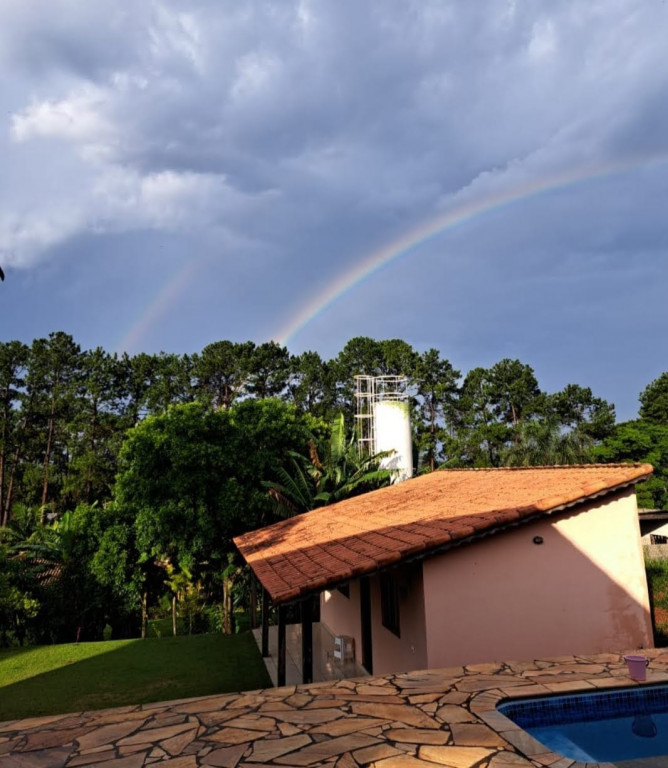 Linda Chácara com casa Principal com 1 dormitório, wc, sala, cozinha e possui um espaço para construir mais 1 dormitório, possui também um alojamento com banheiro para hospedes, área gourmet com 2 banheiros, piscina, condomínio fechado e monitorado por portaria virtual.