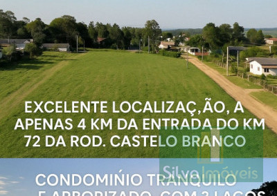 Localização privilegiada, a apenas 4 km do Km 72 da Rodovia Castelo Branco, com fácil acesso à capital e região.