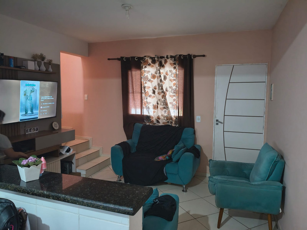 Lindo sobrado aceita financiamento bancário, contem 2 quartos, sala, cozinha e 2 banheiros, garagem para 2 carros, tem área gourmet, quintal e quartinho de dispensa.